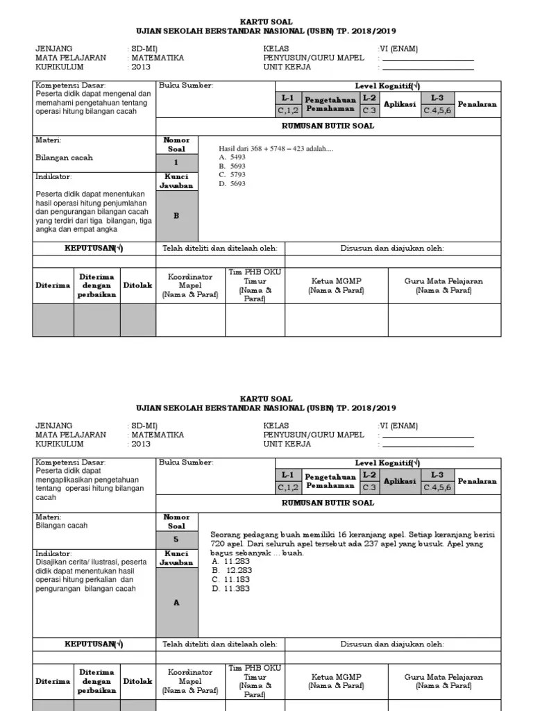 Berikut link soal dan pembahasan usbn 2019. Contoh kisi kisi kartu soal uraian dan pilihan ganda pembuatan soal. Perangkat soal pas 1 2019 klik disini perangkat soa uasbn 2019 klik disini materi bedah indikator usbn 2019 kd ipa ktsp kd ipa k13 format kartu soal format . Download soal usbn/un sd tahun ajaran 2019/2020 prediksi & tryout bahasa indonesia, matematika, ipa, dilengkapi dengan 5 soal uraian dan pembahasannya. Buku soal sd kelas 6 usbn xpress ipa ilmu pengetahuan alam 2020 by bambang sutejo plus kunci jawaban. Soal latihan ujian sekolah us ipa sdmi 2019 energi alternatif air . Contoh kartu soal penilaian harian, pts, pas, pat dan usbn. Pelajari materi latihan soal dan pembahasan soal un sma matematika ipa. Kartu soal ujian ilmu pengetahuan alam smk nu manbaul falah. Soal & jawaban ujian sekolah mapel . Buku kumpulan soal usbn matematika sd 2019. Kartu soal ujian sekolah ipa.docx · kartu soal ujian sekolah ips.docx · kisi dan kartu soal ipa us 1.docx · kisi dan .