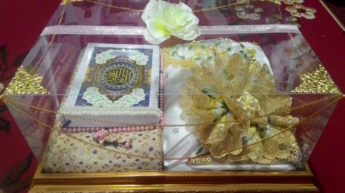 Selain emas, kamu pasti sering menemukan mas kawin seperangkat alat sholat pada acara pernikahan.